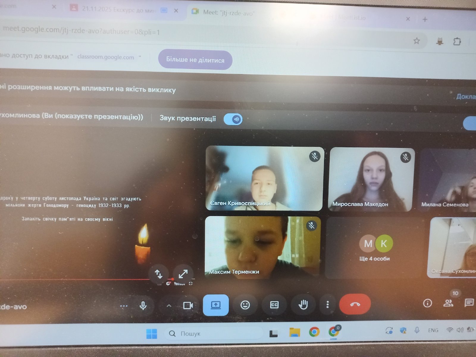 21 листопада у 7-Б класі було проведено Екскурс до минулого «Замордовані голодом», приурочений до Дня вшанування жертв Голодомору.